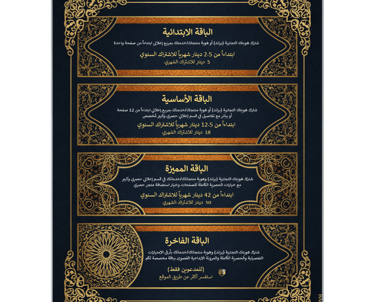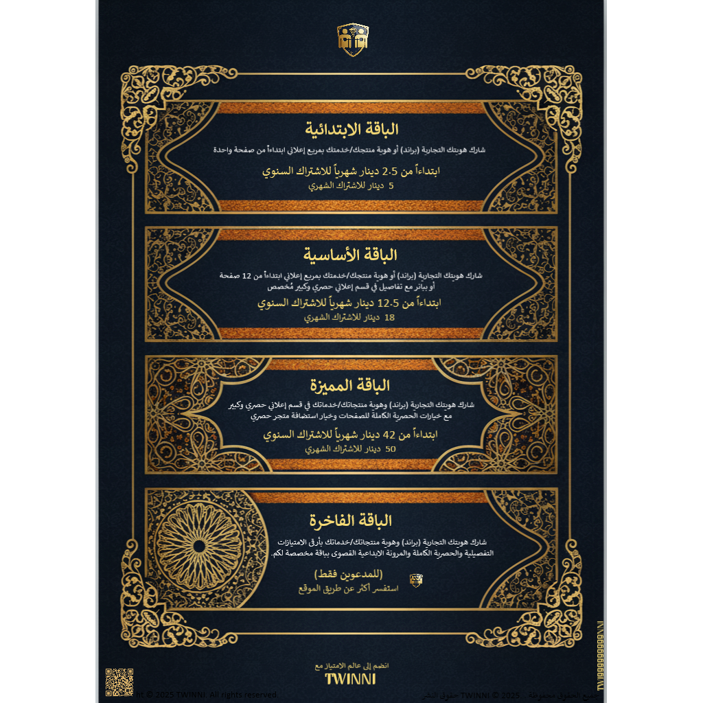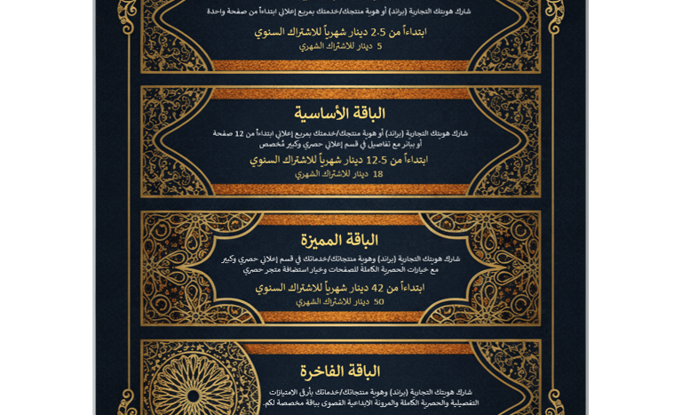 شارك هويتك التجارية (براند) وهوية منتجاتك/خدماتك بأرقى الامتيازات التفصيلية والحصرية الكاملة والمرونة الابداعية القصوى بباقة مخصصة لكم