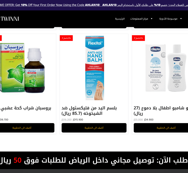 خصم 10% على طلبك الأول باستخدام الرمز AHLAN10.