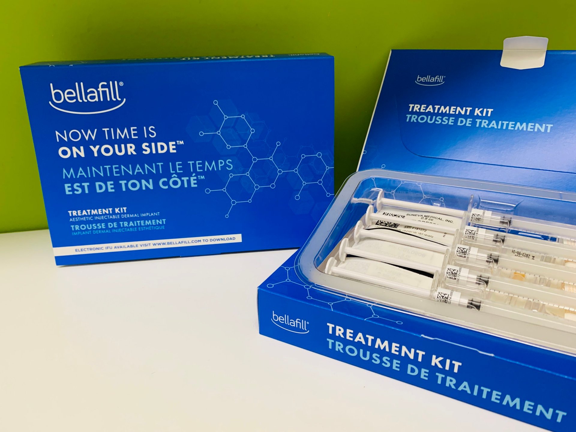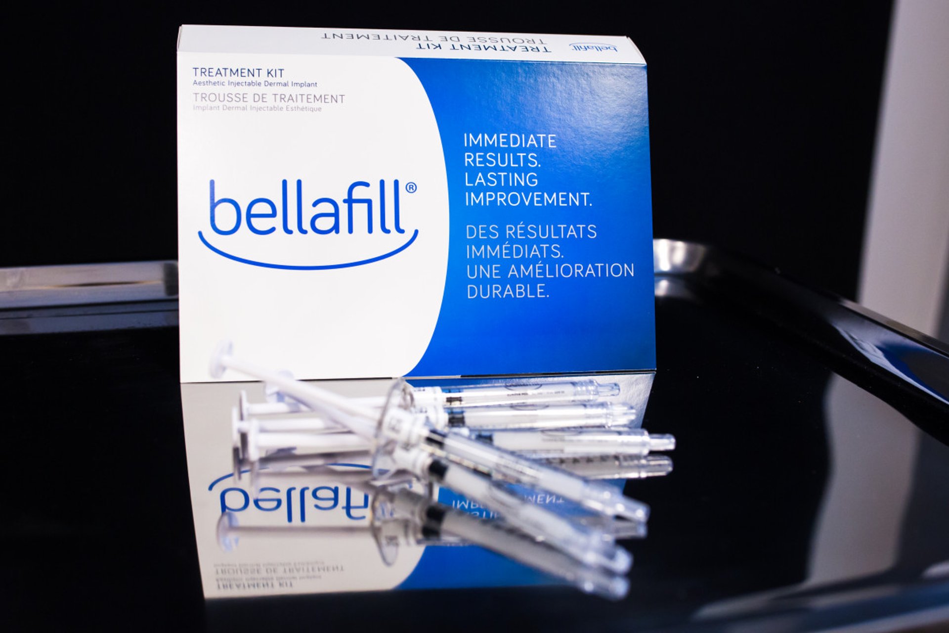 مستحضر دواء بولي ميثيل ميثاكريلات بالاسم التجاري Bellafill® حالياً مُتاح في الأسواق ولم يتم إيقافه. (الاسم التجاري ArteFill®هو الذي تم إيقافه واستبداله بـ Bellafill®).